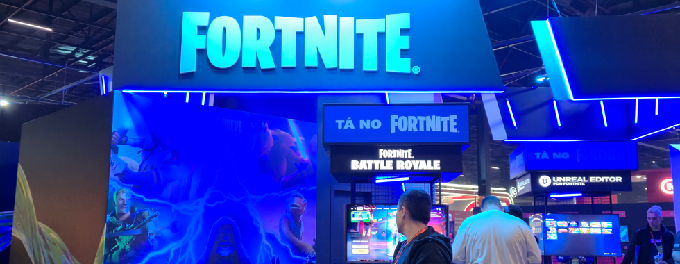 O estande contou com diversas estações equipadas para o público jogar Fortnite gratuitamente. As partidas aconteciam em modo competitivo e casual, permitindo que jogadores de todos os níveis participassem. Telões exibiam as melhores jogadas em tempo real, criando clima de arena gamer. A movimentação foi constante durante todos os dias de evento.