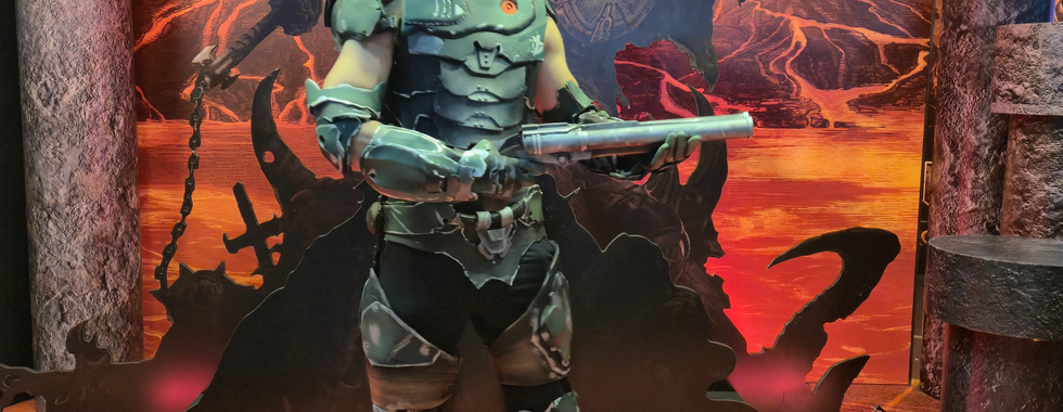 O espaço contou com cenários temáticos para fotos, especialmente na área de Doom The Dark Ages.